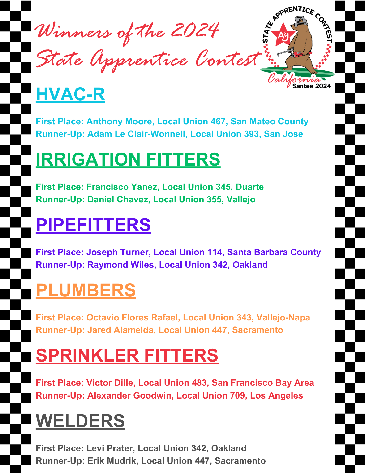 CONGRATULATIONS 2024 State Apprentice Contest WINNERS